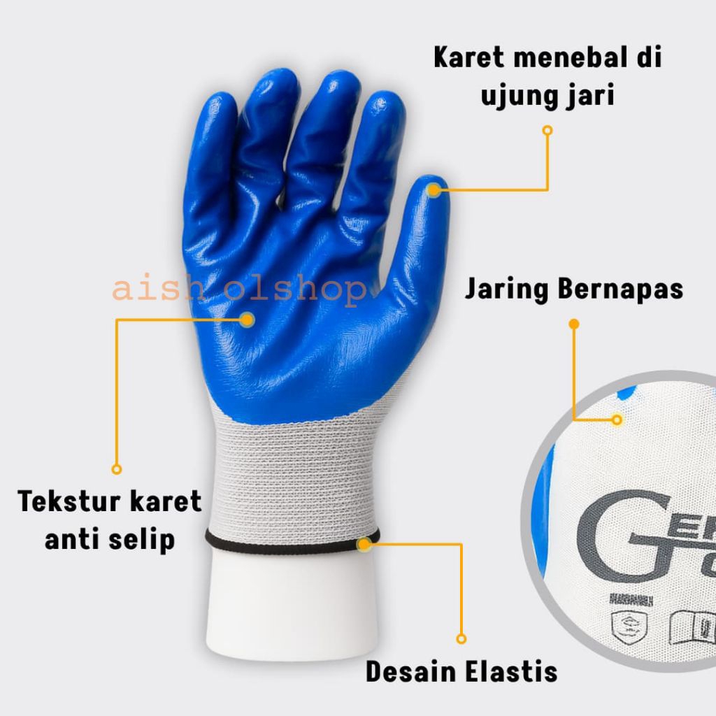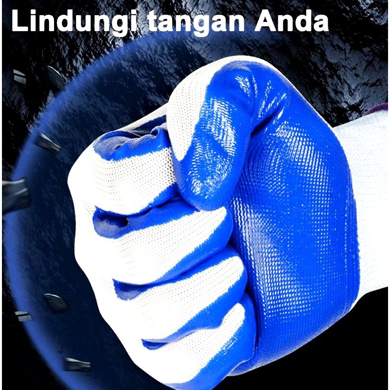 Sarung Tangan Kerja Proyek Anti Slip Tebal Kuat Safety Glove Premium Sarung Tangan Karet LATEX / PALMFIT / NYLON Polvrethane Gloves