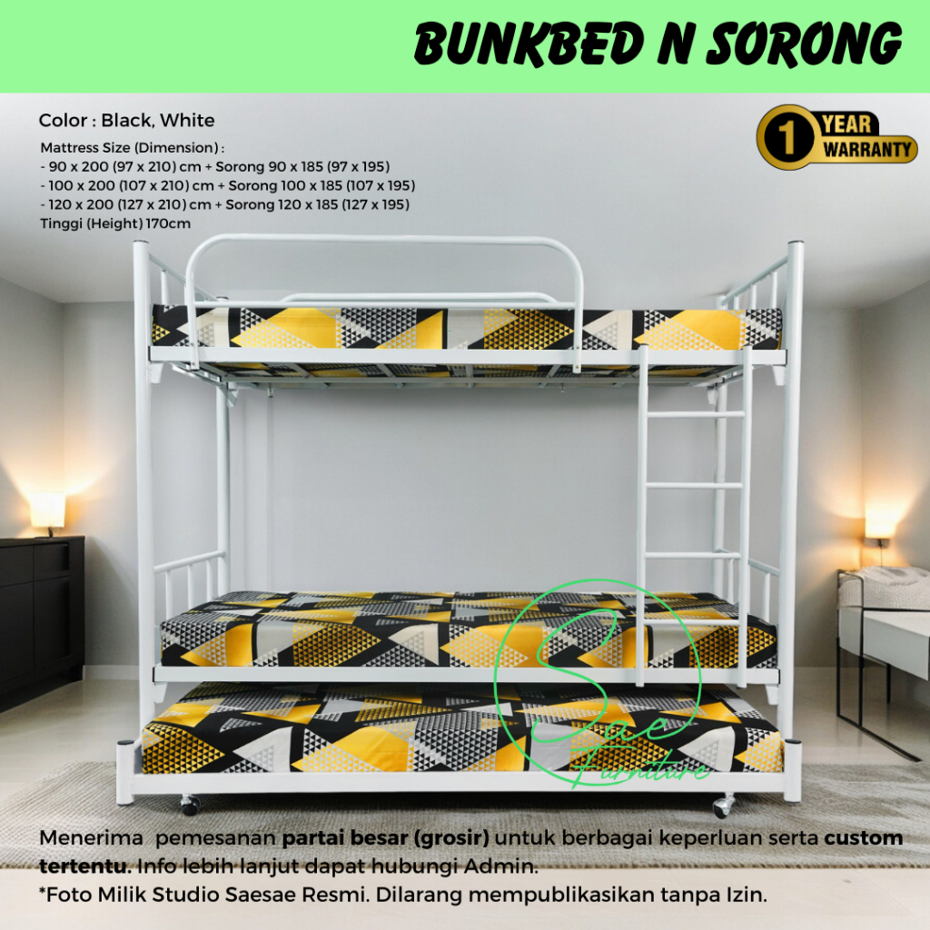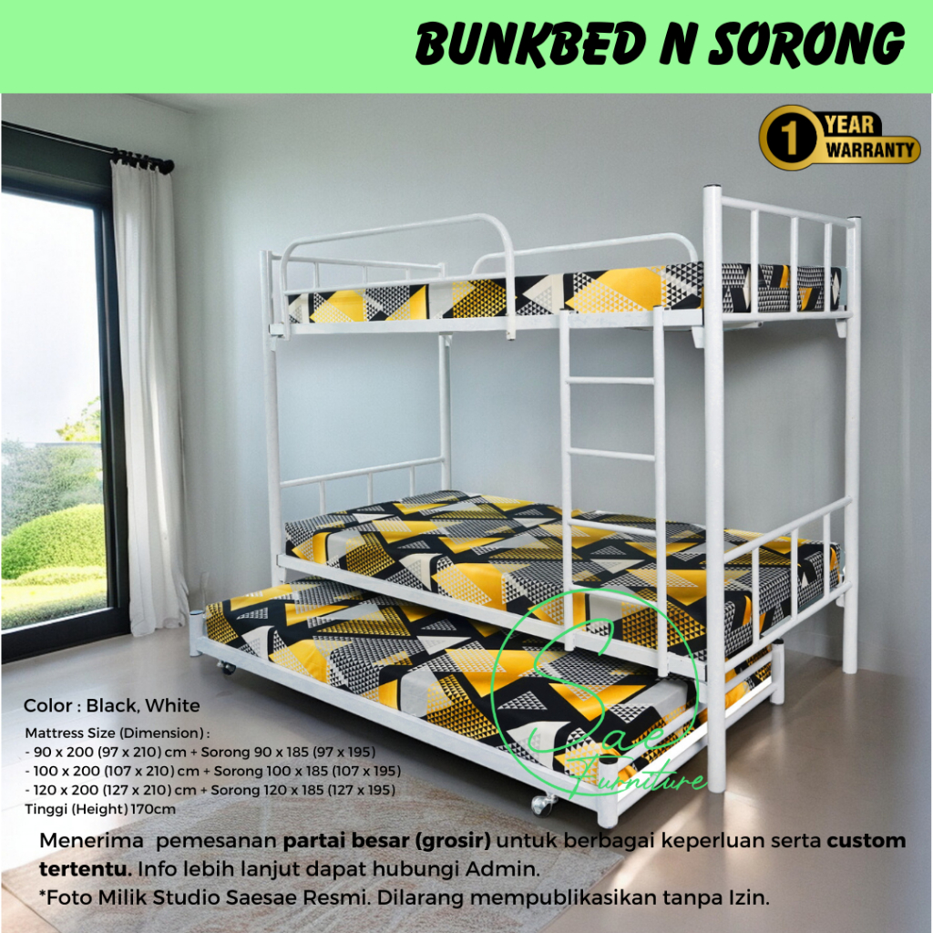 RANJANG BESI SUSUN SORONG 3 TINGKAT 200X90 200X100 200X120 COCOK KOST ASRAMA PESANTREN SIMPLE 2SS