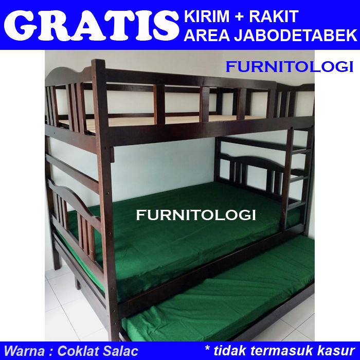 RANJANG SUSUN 3 TINGKAT UK 120X200 DIPAN TINGKAT KAYU TEMPAT TIDUR TINGKAT SORONG BUNK BED