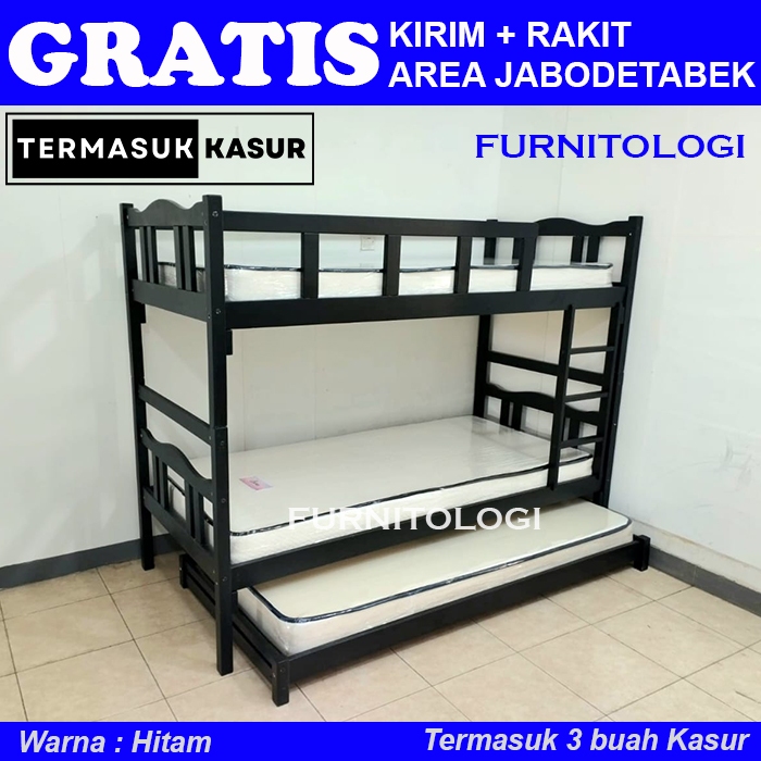 RANJANG 3 SUSUN RANJANG TINGKAT SORONG 90X200 TEMPAT TIDUR 3 TINGKAT RANJANG SUSUN KAYU 90X200