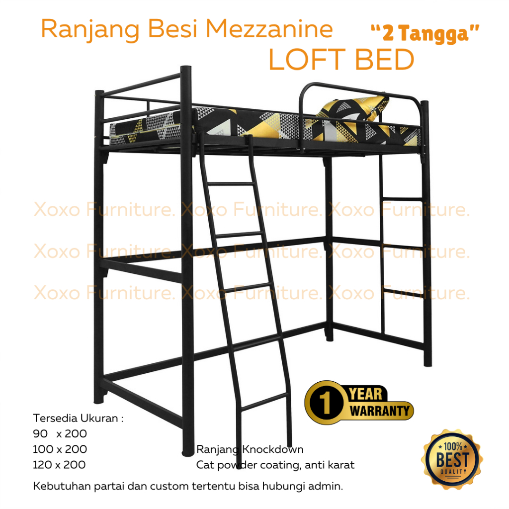 LOFT BED RANJANG SUSUN MEZZANINE BESI MINIMALIS 90X200 100X200 120X200 DUAL TANGGA LB