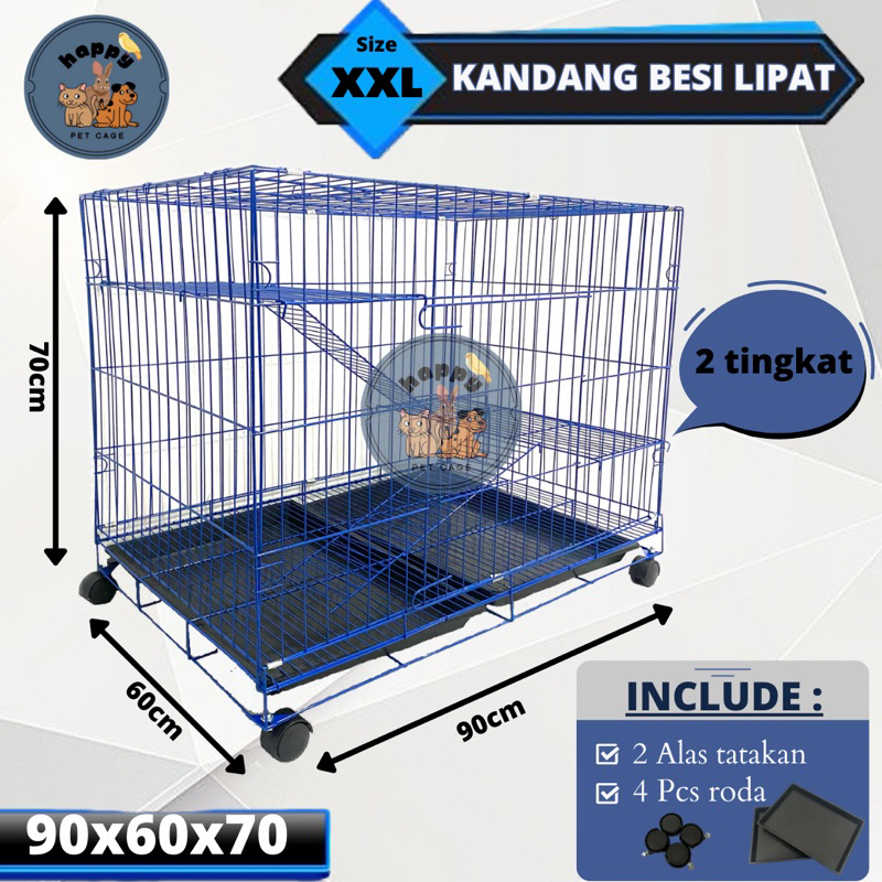 Kandang Kucing Jumbo XXL 90x60x70 2 Tingkat/ Kandang Besi Lipat Tebal Premium