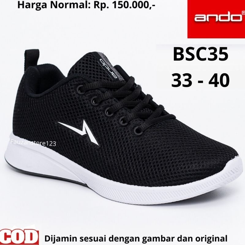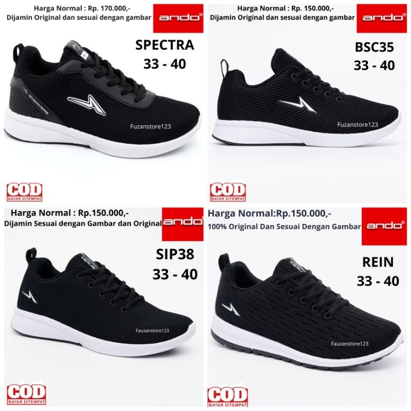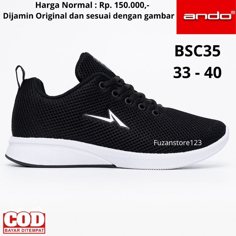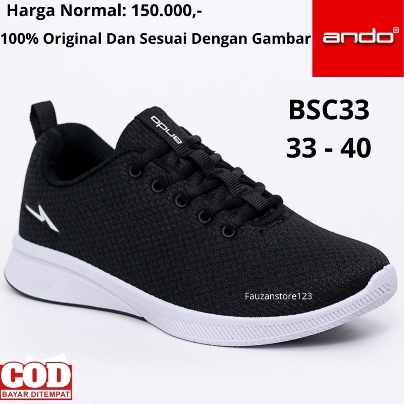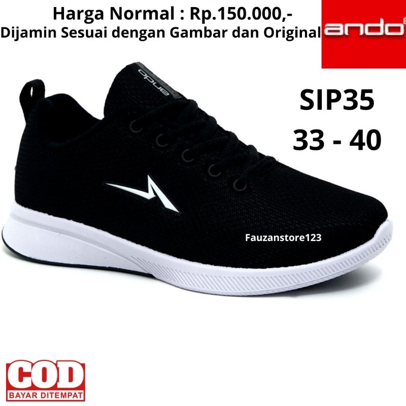 SEPATU SNEAKER SEKOLAH ANAK LAKI LAKI PEREMPUAN ANDO ORIGINAL BSC35 ADRINA BSC33 REIN SIP ZILKA SPECTRA ELSIE HITAM PUTI