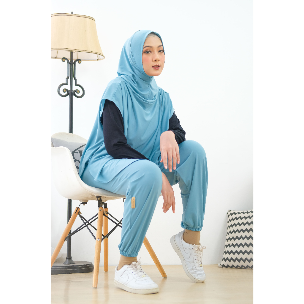 HELAIRINDU - Setelan Hijab Olahraga Wanita Outer Hijab dan Celana Bahan Royal Jersey