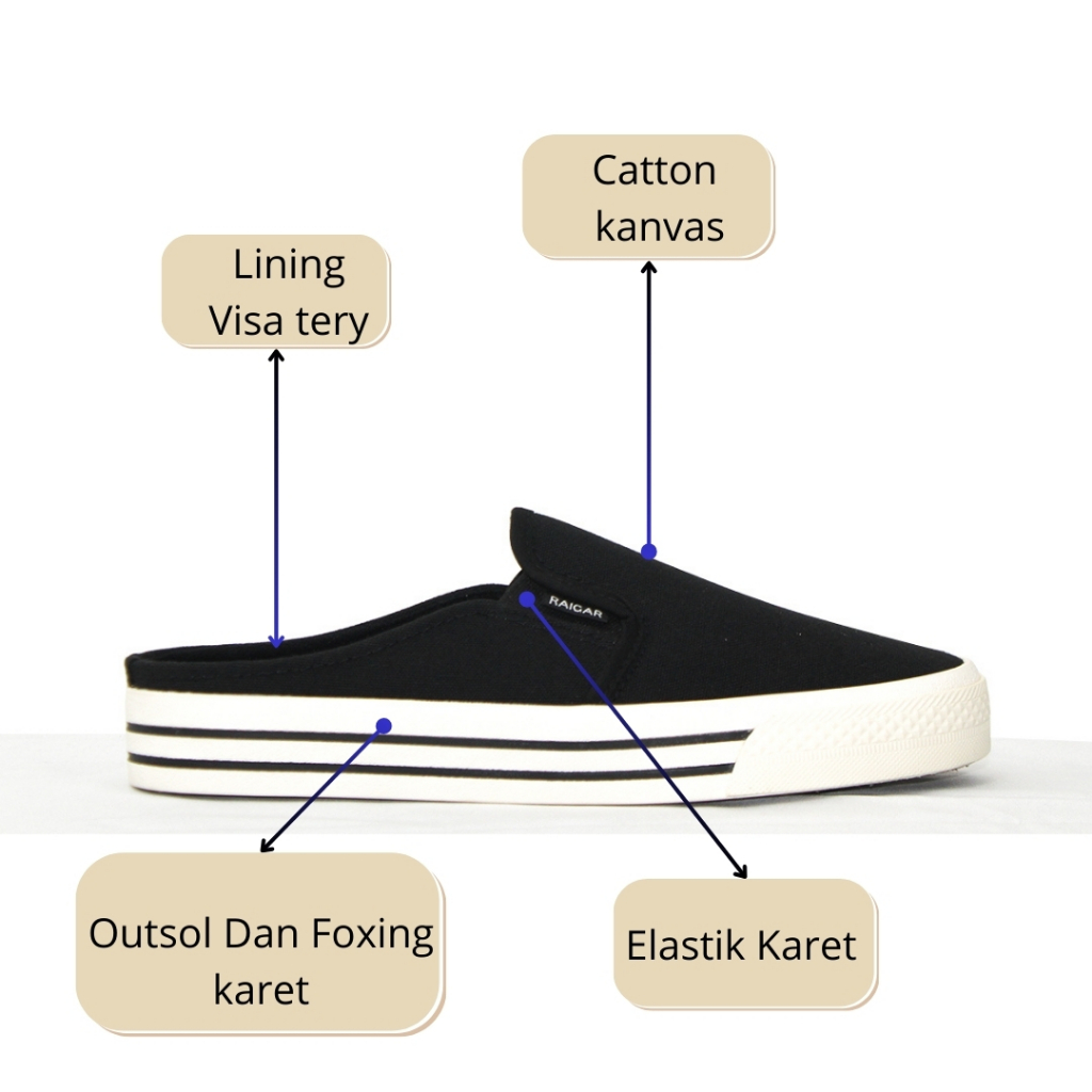 Raigar Sepatu Sandal bustong Slop original Canvas Premium Simpel Foxing karet Anti Slip termurah