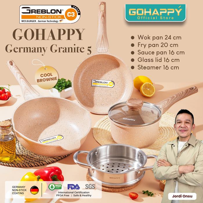 (SPECIAL JORDI ONSU) GOHAPPY PANCI SET 5 PC GREBLON C3 Germany Granite Anti Lengket Terbaik