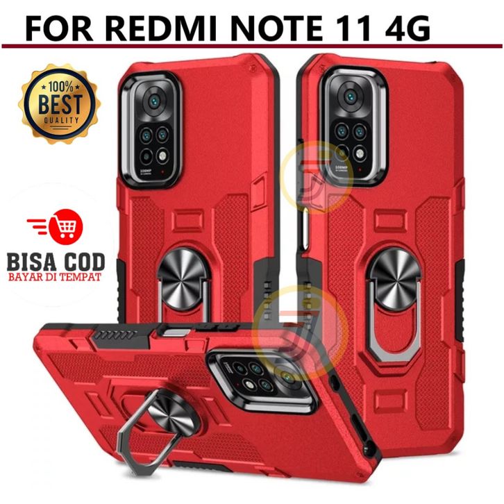 casing xiaomi infinix iphone OFFO Casing Xiaomi Redmi Note 11 4G Ring Armor Robot Case Kickstand Hybrid/Ring Holder New