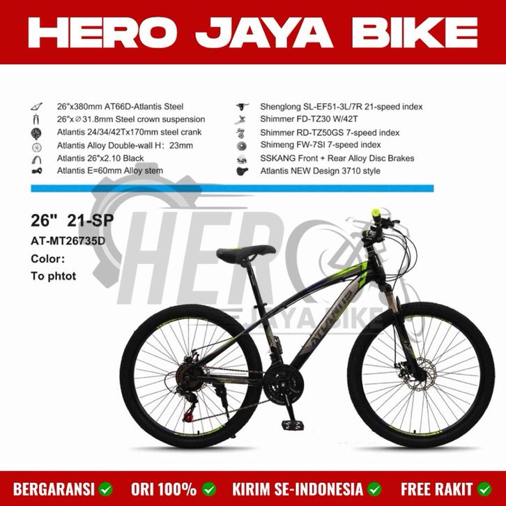 SEPEDA GUNUNG MTB ATLANTIS 735D NEW UKURAN 24 26INCH REM CAKRAM TERBARU TERLARIS