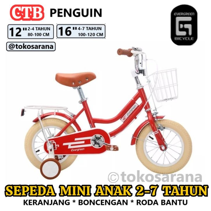 SEPEDA ANAK EVERGREEN PENGUIN CTB 4-7 TAHUN 16 INCI NAIK TURUN MUDAH KIDS CITY BIKE TERLARIS