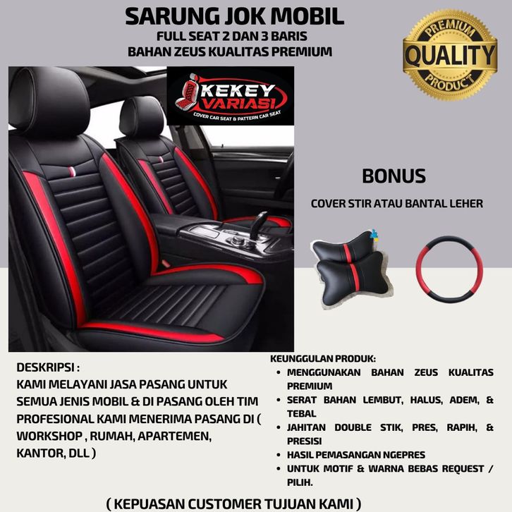 sarung jok mobil 2 baris full set untuk semua jok mobil jenis sedan.bahan zeus