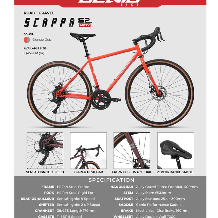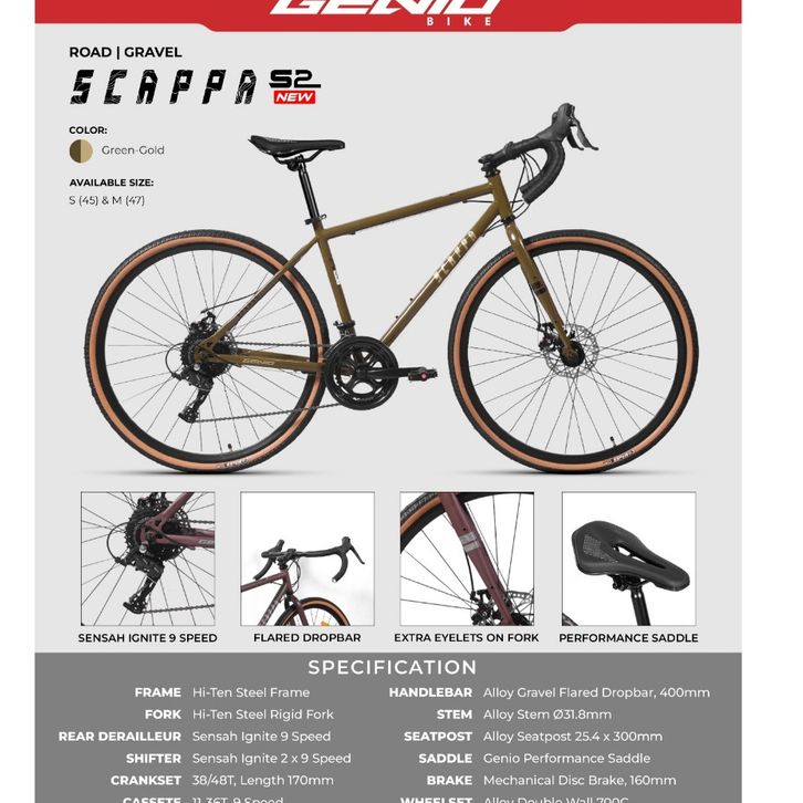 [GARANSI RESMI] GENIO SCAPPA S2 2024 700C SEPEDA ROADBIKE DEWASA BALAP STEEL 18 SPEED TERBARU TERLARIS