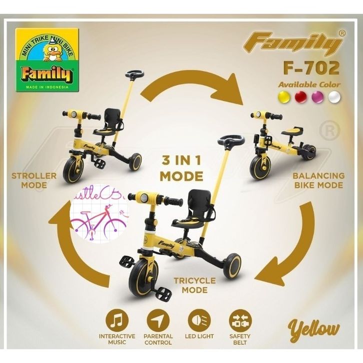 FAMILY F702 SEPEDA RODA TIGA ANAK 3IN1 BALANCE BIKE MUSIK N STIR DORONG TERLARIS