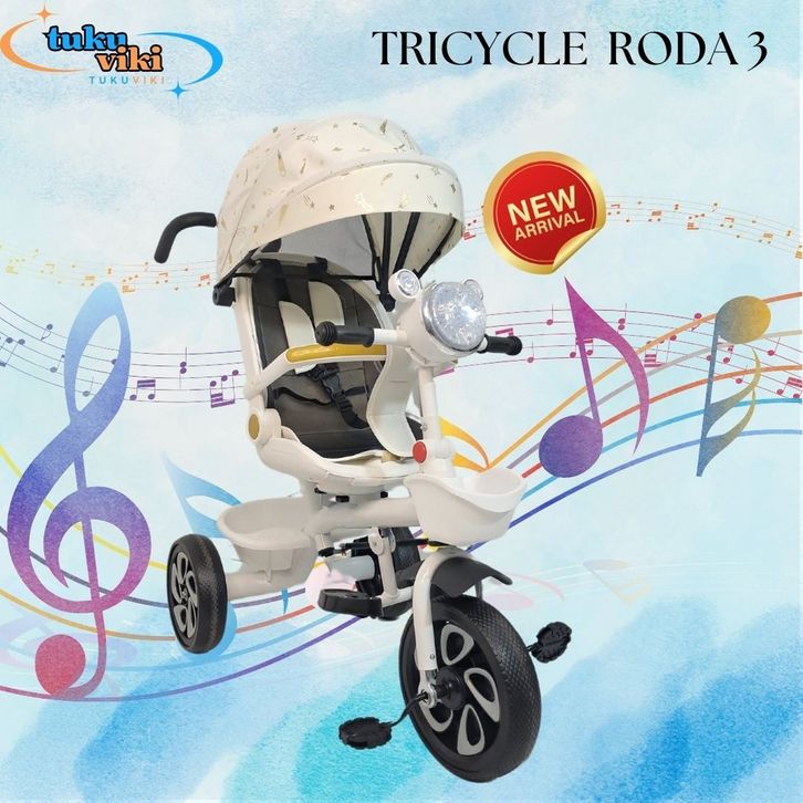 SEPEDA ANAK RODA 3 TRICYCLE BAYI RODA TIGA SEPEDA STROLLER DORONG TIDUR DUDUK LIPAT MUSIK LAMPU TERLARIS