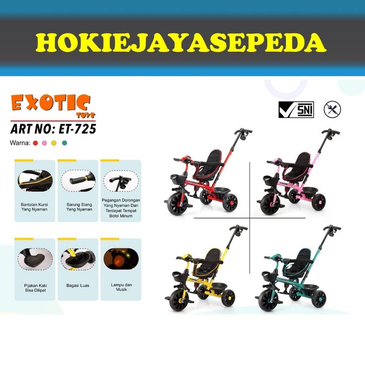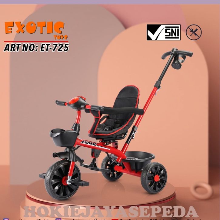 SEPEDA RODA TIGA ANAK EXOTIC 725 FITUR STROLLER 2 ARAH - PENGAMAN BADAN - MUSIK DAN TONGKAT KEMUDI TERLARIS