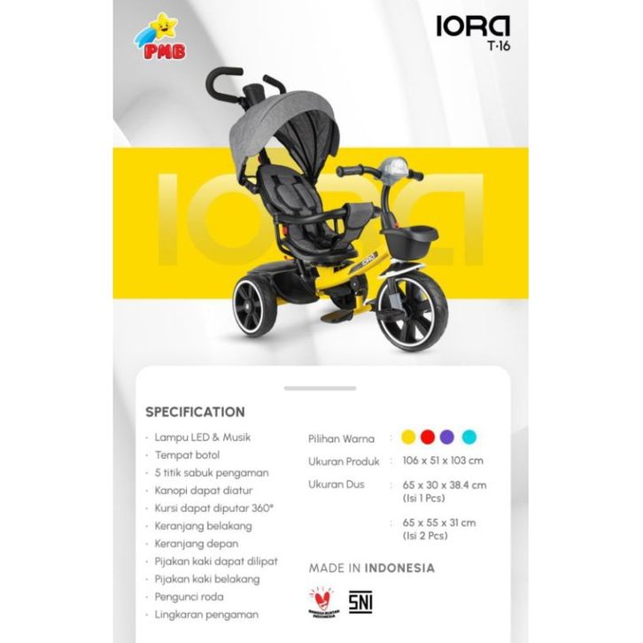 SEPEDA RODA TIGA ANAK PMB IORA T-16 T 33 MUSIK LAMPU JOK PUTAR TERLARIS