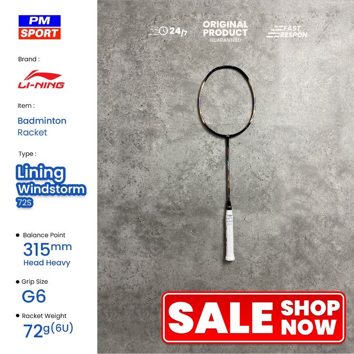 RAKET BADMINTON / BULUTANGKIS LINING WINDSTORM 72S - BLACK/GOLD/RED