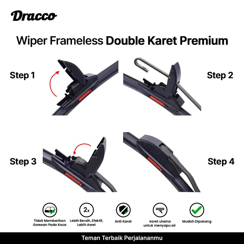 DRACCO wiper frameless double karet free 6 konektor universal premium wiper mobil dual blade