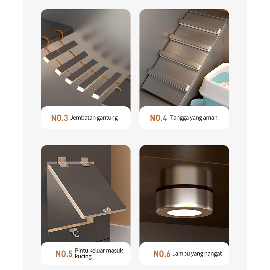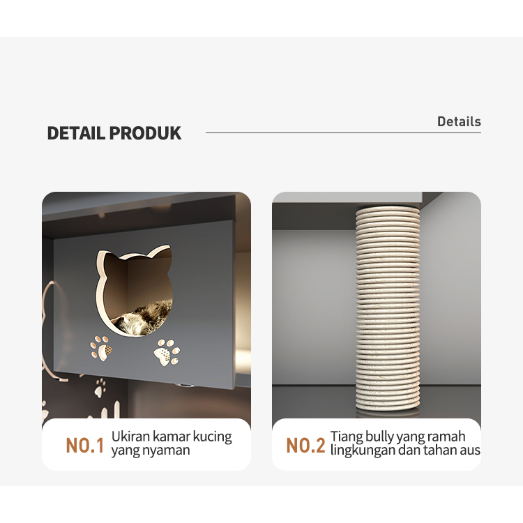 Vila Kucing Mewah/Rumah Kucing/Kandang Kucing Bongkar Pasang/Rumah Kucing Nyaman/Vila Kucing Kayu Solid Mewah dan Elegan/Vila Kucing All In One Kandang Kayu Solid dengan ran ekstra besar