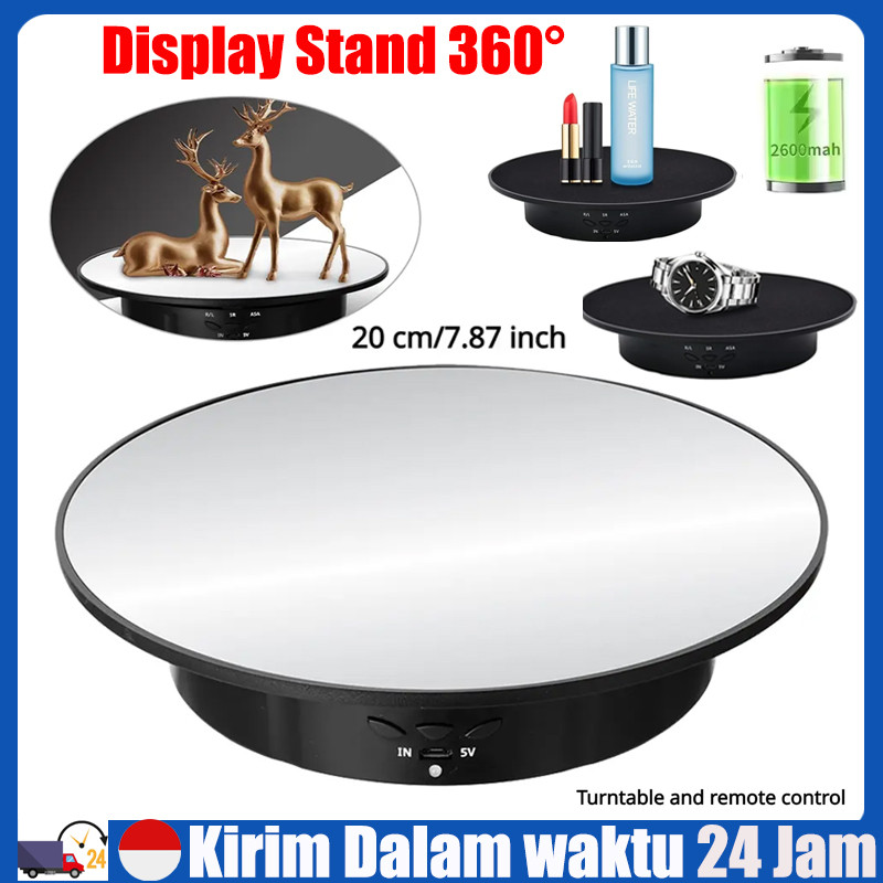 【Stok Siap】Alas Putar Rotating Turntable Display Stand Mirror Remote Rotasi 45°, 90°, dan 180°-QM104
