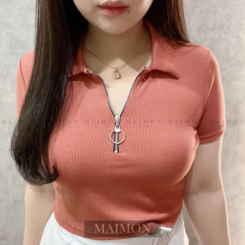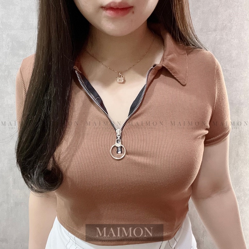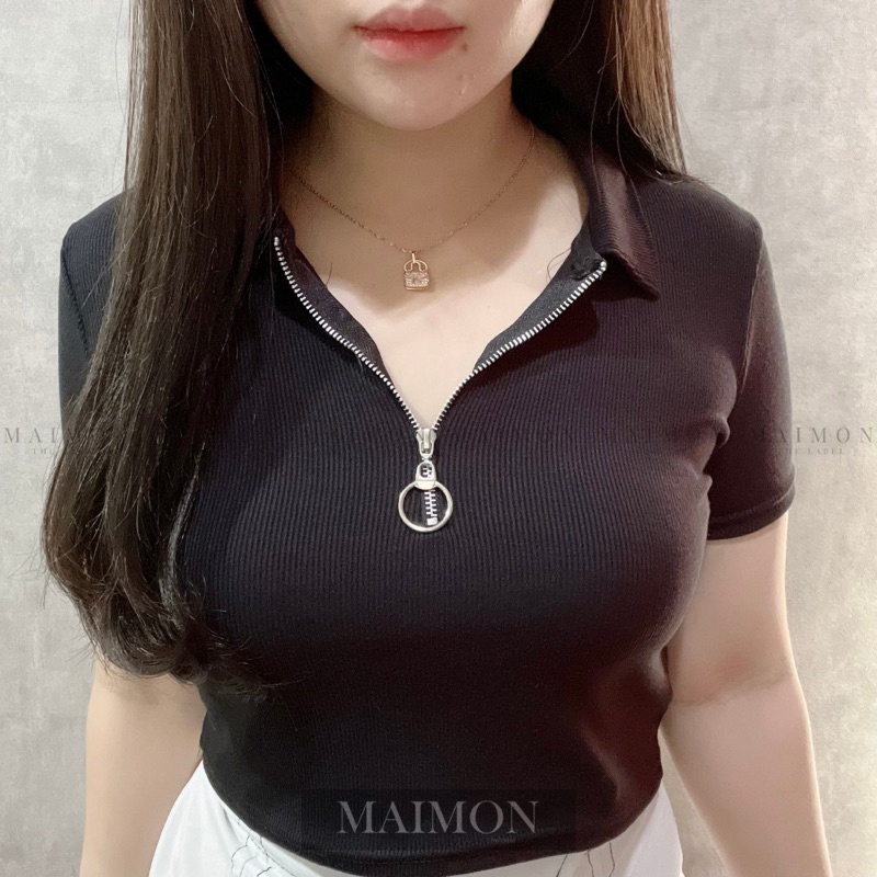 Short Sleeve Zip Up Shirt | Baju Wanita Korean Fashion | Maimon Grosir