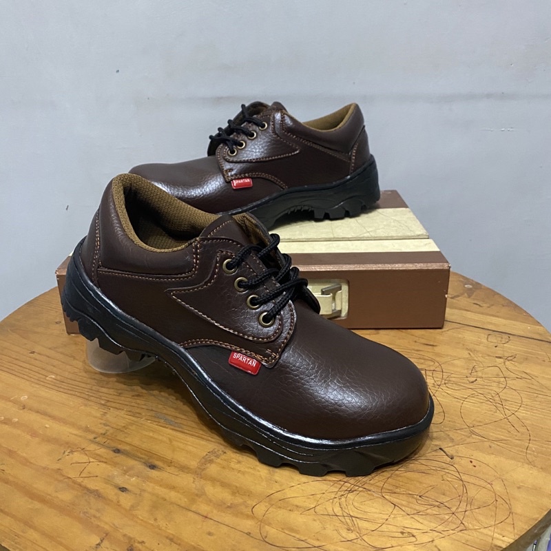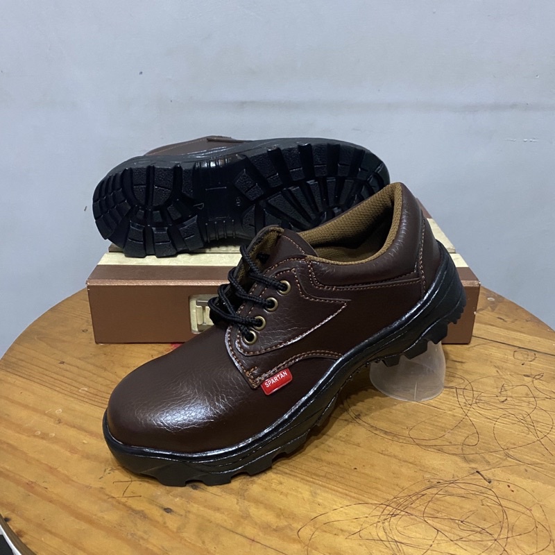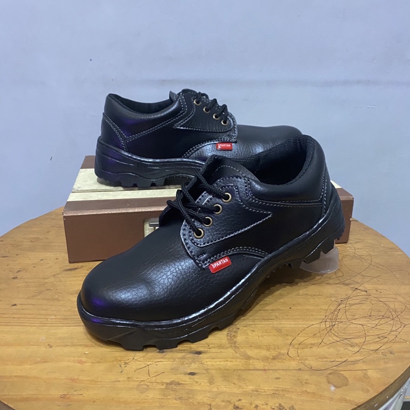 sepatu safety pendek murah bahan kulit sintetis premium dengan ujung besi