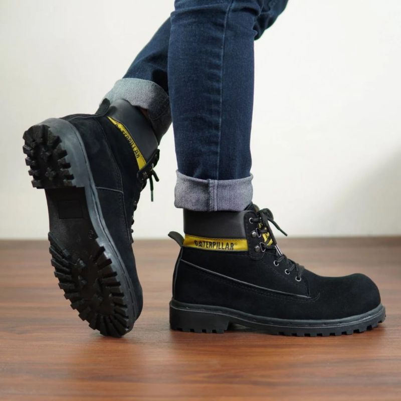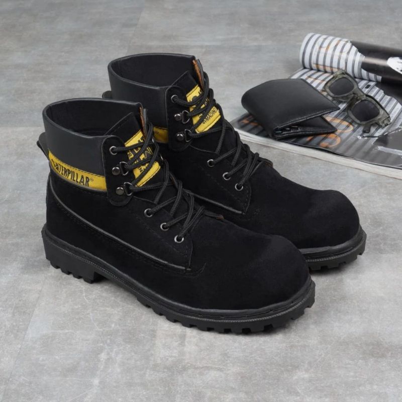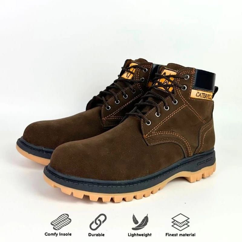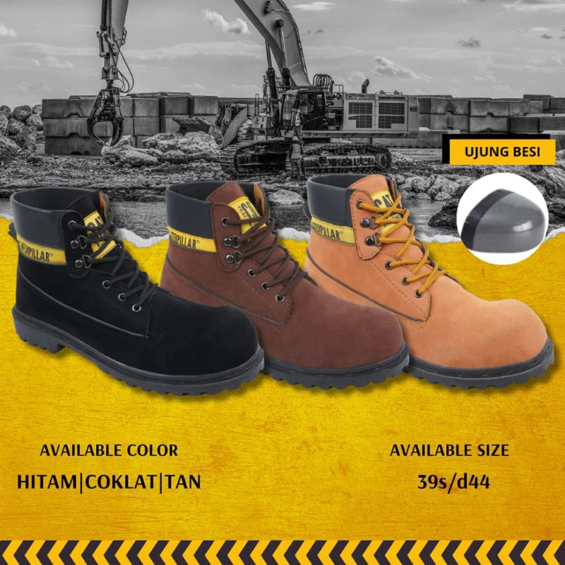 Sepatu Safety Caterpillar Proyek Ujung Kulit Besi - Safety Shoes Boot - Sepatu Kerja Lapangan Kulit Sintetis Semi Boots