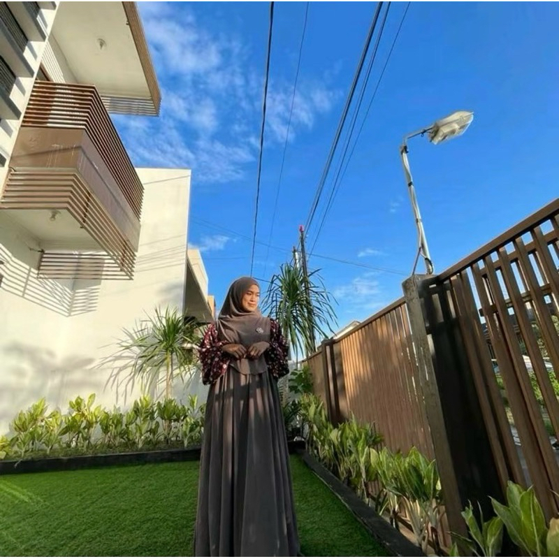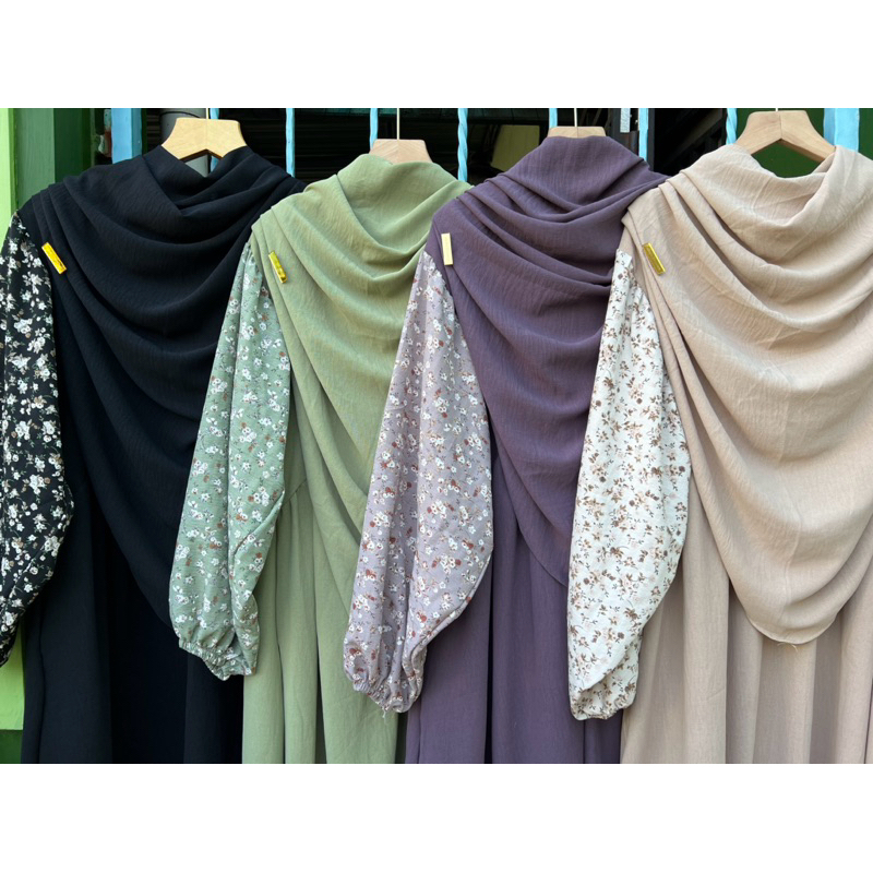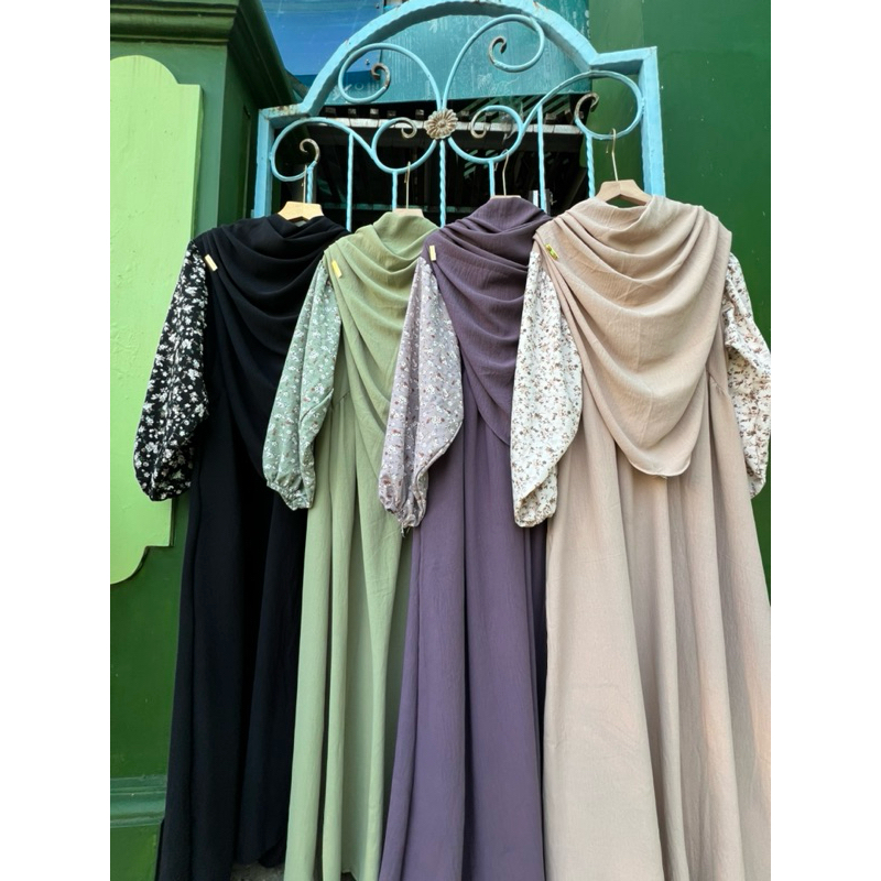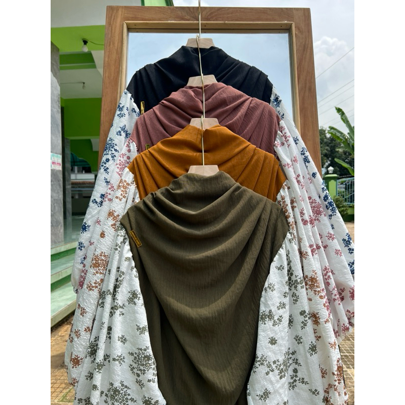 Alesha-Amena Gamis Motif Set Hijab Syar’i Wanita Bahan Crinkle Motip Premium