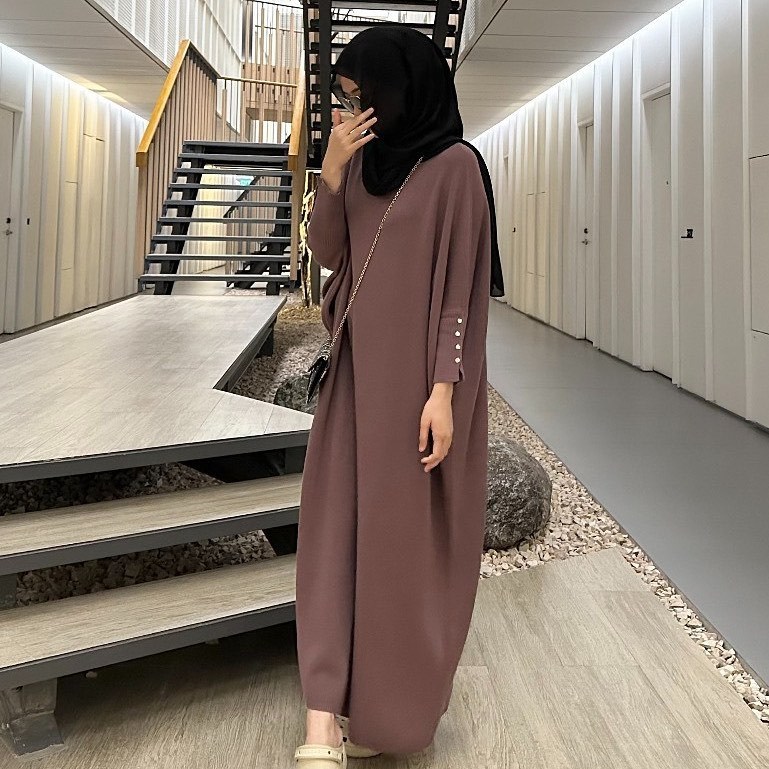 Fashfella - Abaya Gamis Batwing Knit Dress Busui Haji Umroh Lebaran Daily