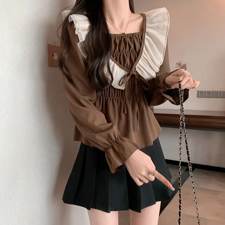 atasan wanita kekinian korean style blouse wanita terbaru blouse korea temperamen fashion top