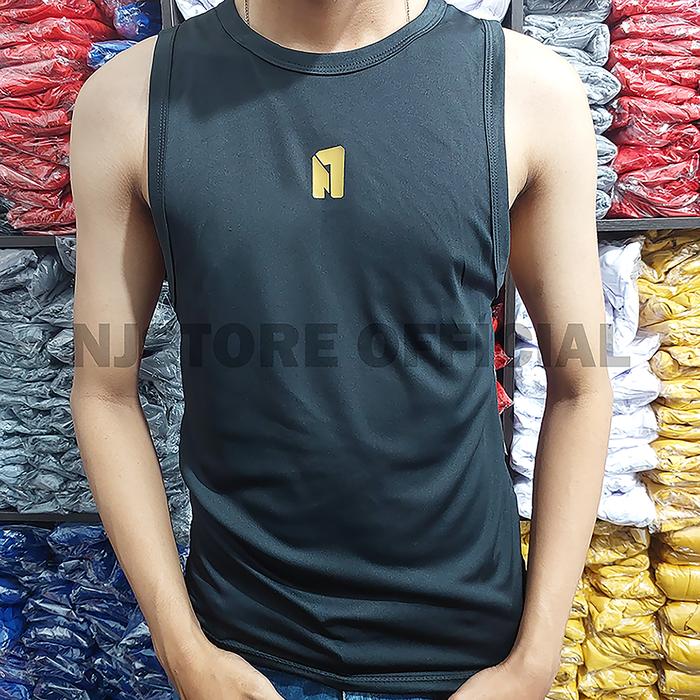 FLASH SALE BASELAYER KAOS SINGLET PRIA WANITA MANSET TANPA LENGAN OLAHRAGA GYMHITAM LOGO M