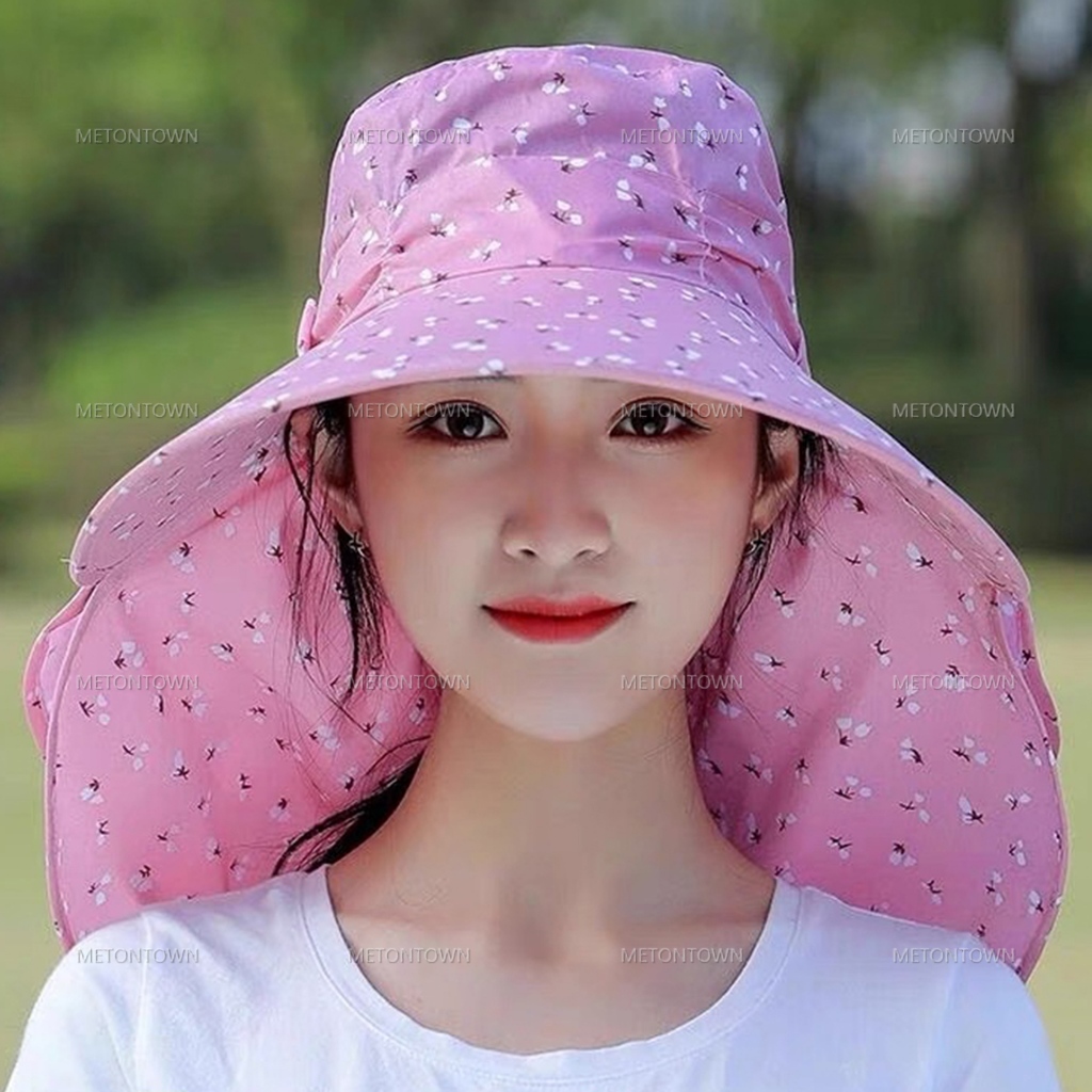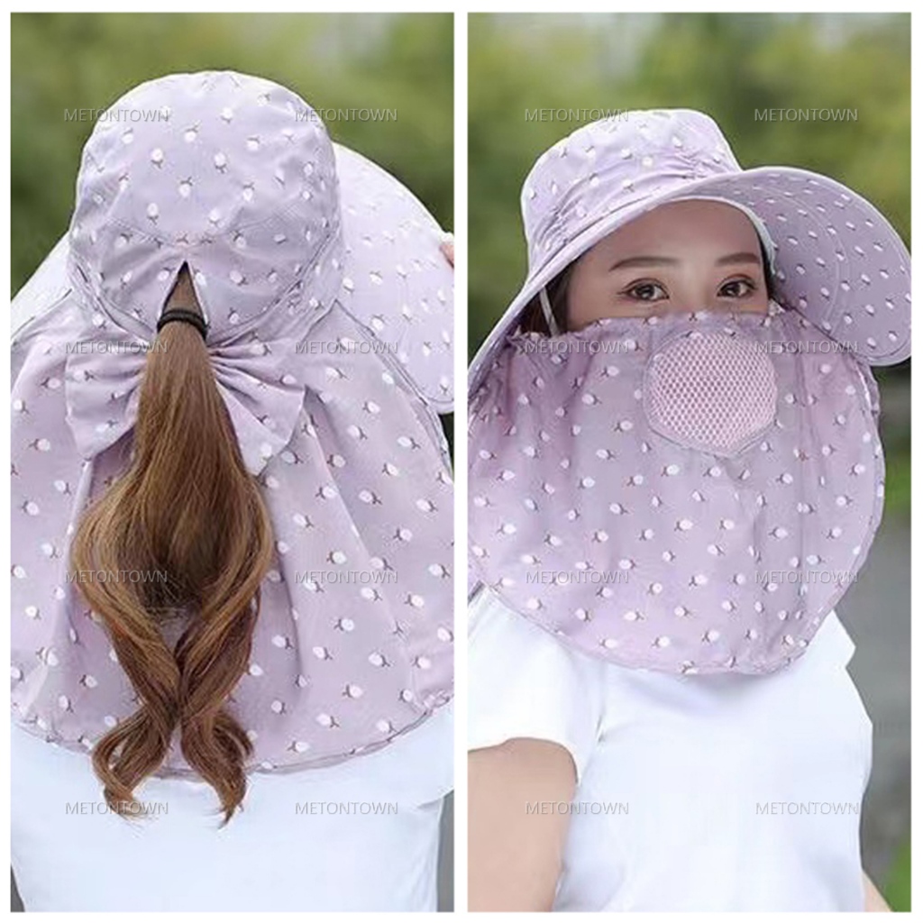 Mtt - Topi Visor Dengan Cadar Motf Bunga Topi Musim Panas Pelindung Anti UV