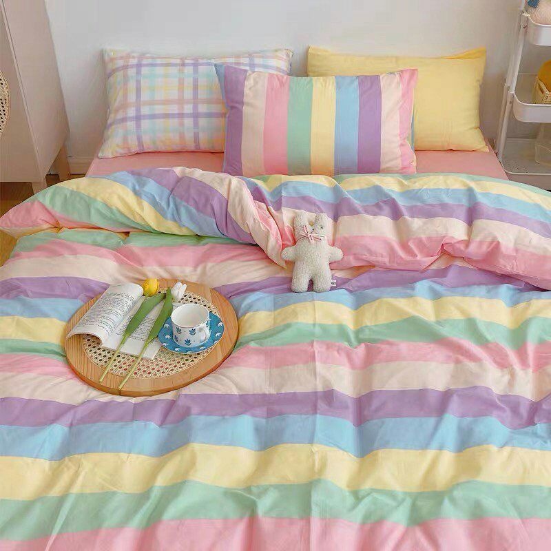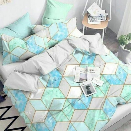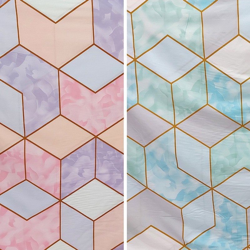 Seprei Motif Geometris Dengan Sarung Bantal dan Sarung Guling - Motif Marble Pink