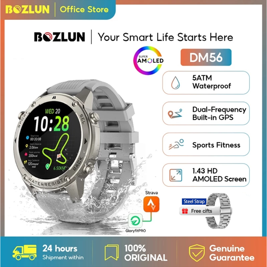 Bozlun DM56 | Built-in GPS | 5ATM | 1.43" AMOLED | Jam Tangan Pintar | Jam Tangan Militer | Ketinggian/Tekanan Udara Da