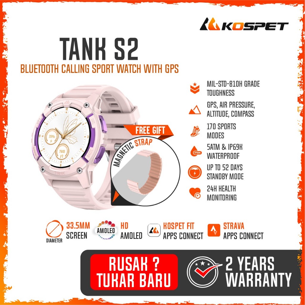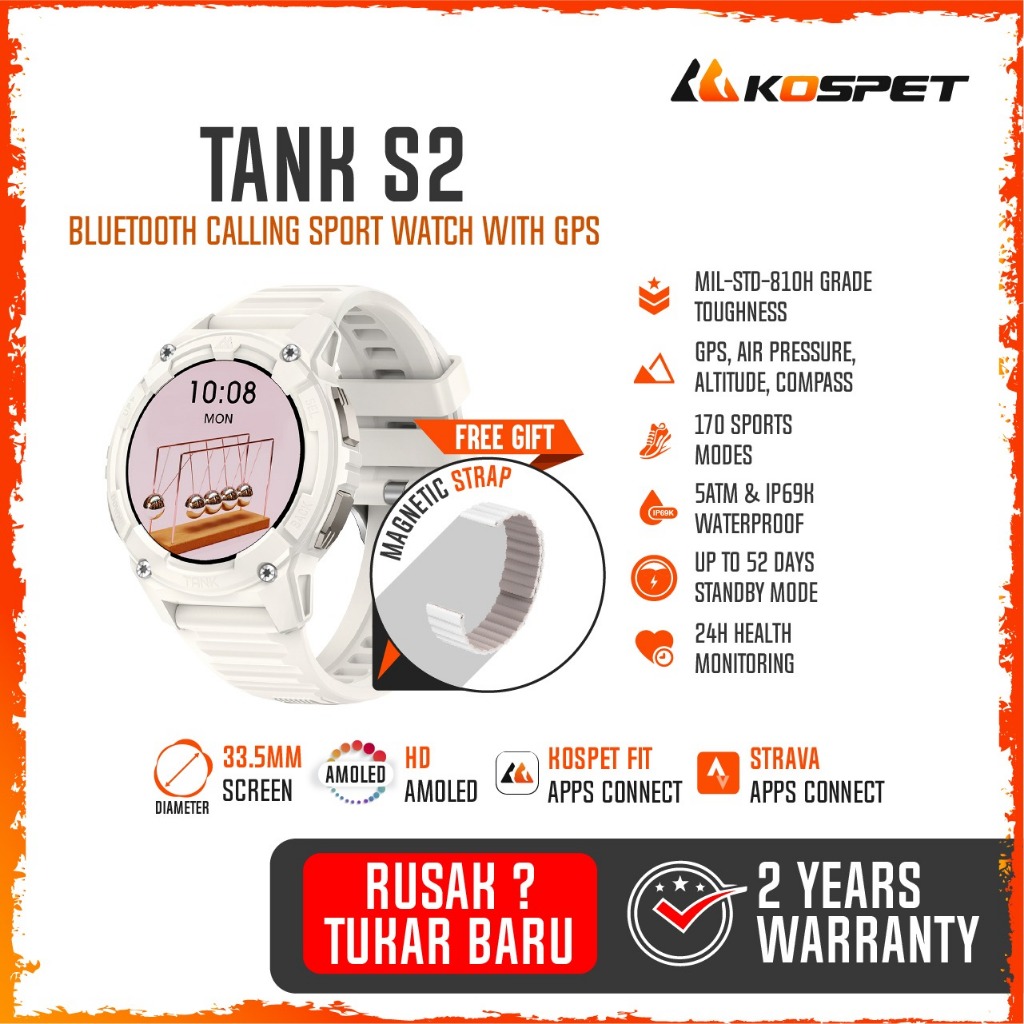 Kospet Tank S2 Bluetooth Calling Rugged Smartwatch GPS 1.32" Amoled SPO2 5ATM 170+ Sports Modes