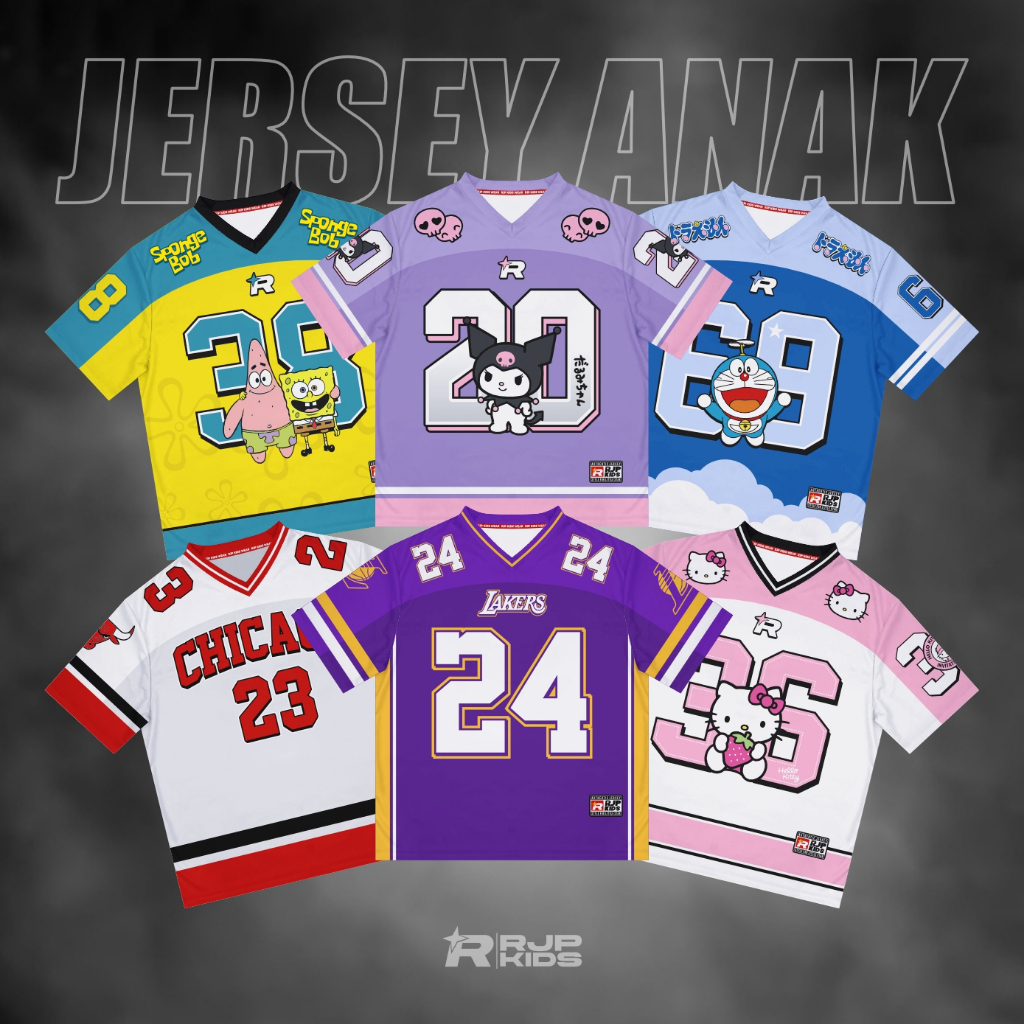 LevyKidswear Kaos Jersey Anak Series Karakter and Number Rugby Streetwear Vintage lakilaki perempuan