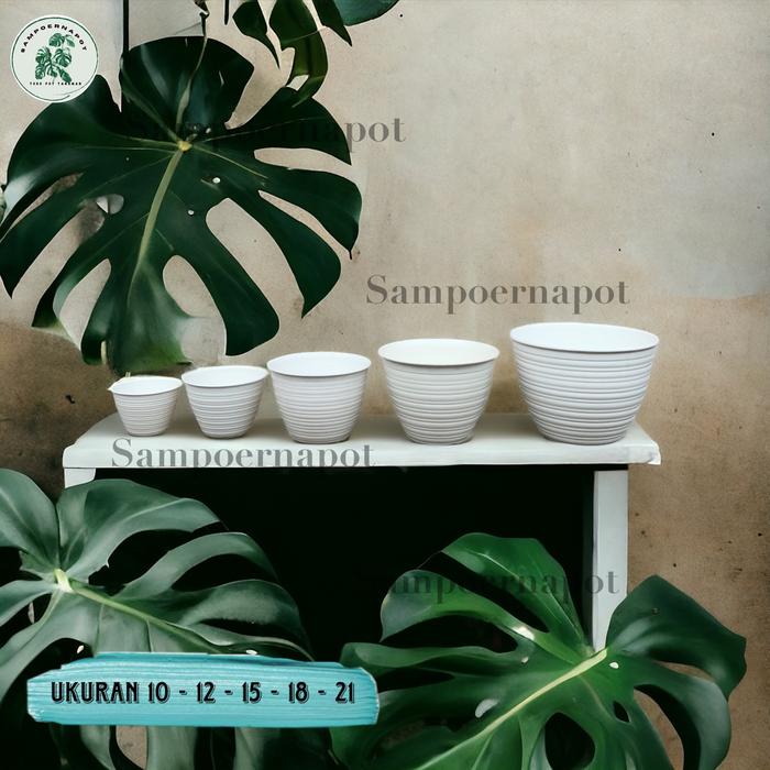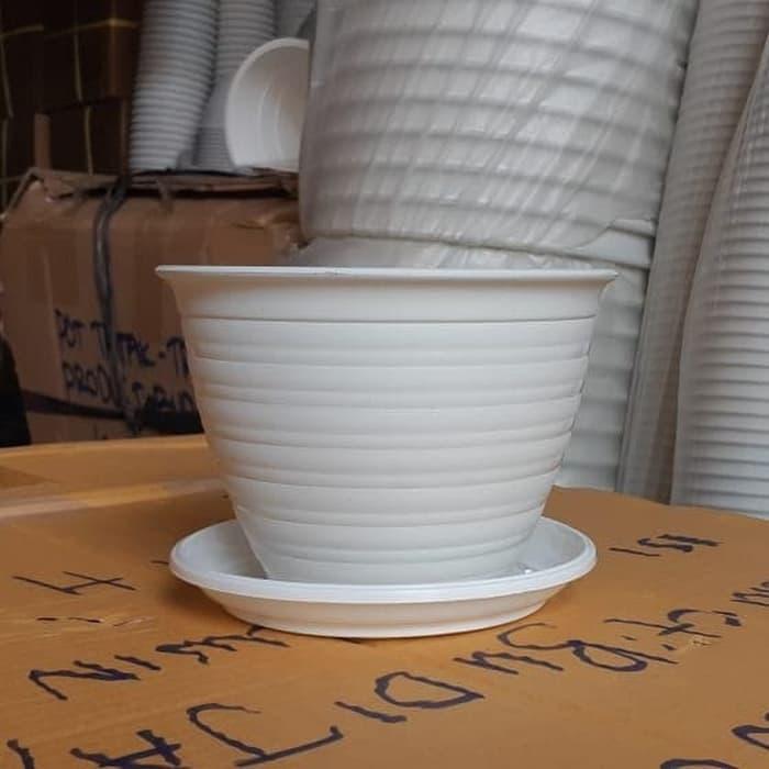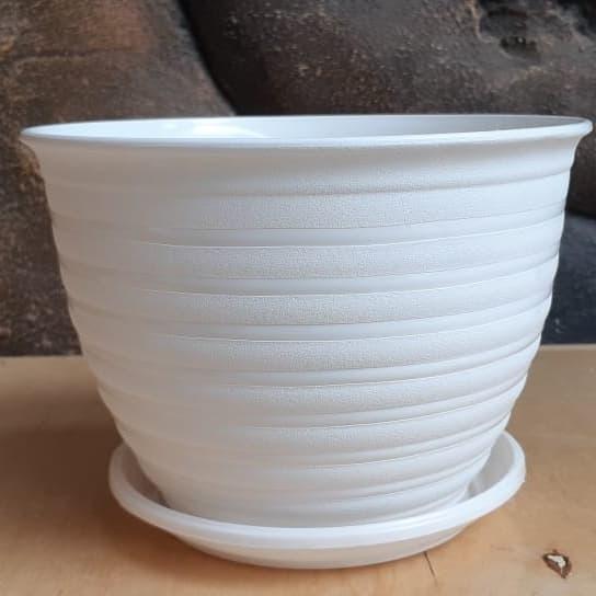 TERLARIS POT BUNGA TAWON PUTIH 21CM TATAKAN PUTIH