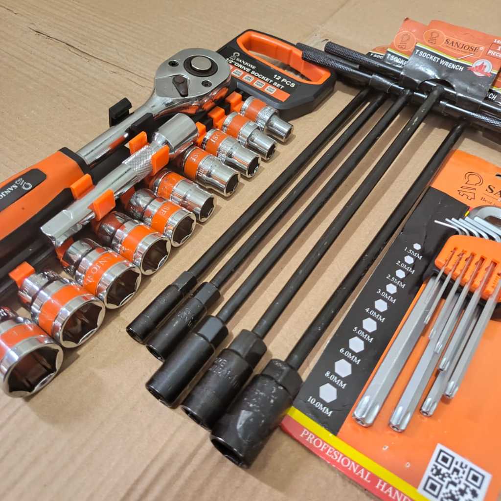 Paket Lengkap 3set / Kunci Sok Set 12pcs 8-24mm 6pt 1/2 inci Gagang Rachet + Kunci T 5pcs *-10-12-14-17mm + Kunci L Komb
