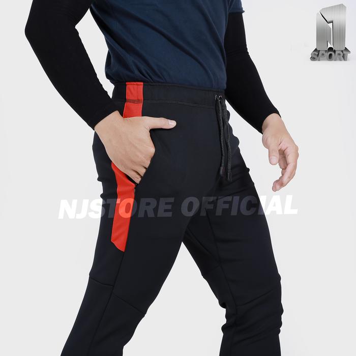 FLASH SALE CELANA TRAINING SPORT PRIA WANITA POLOS LIST MERAH MODEL SLIMPOLOS M