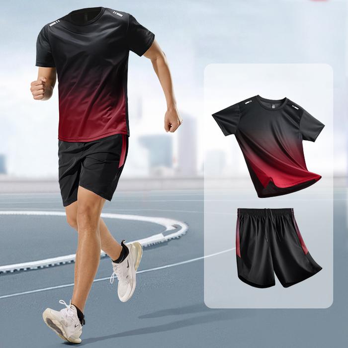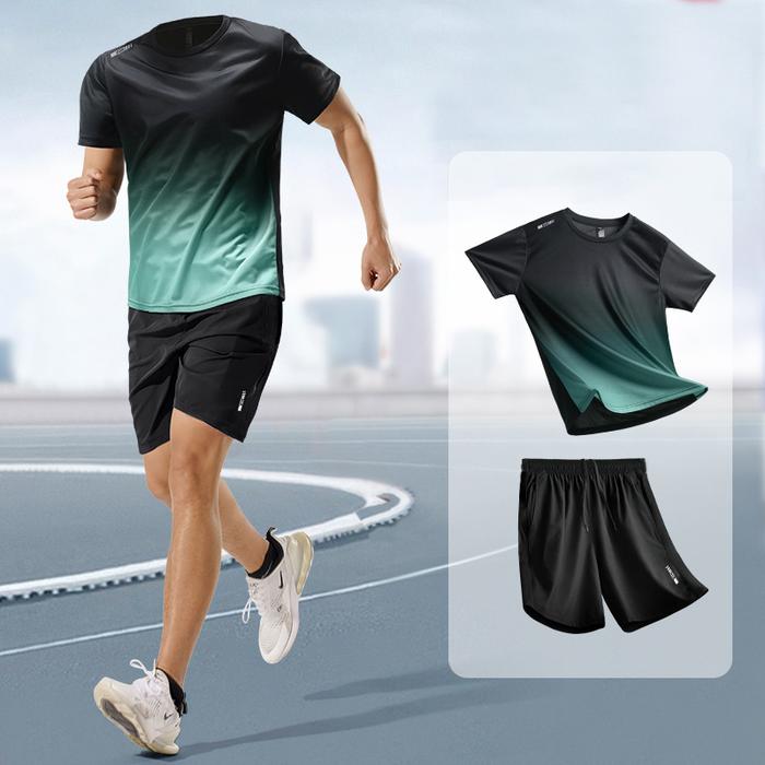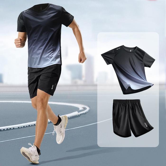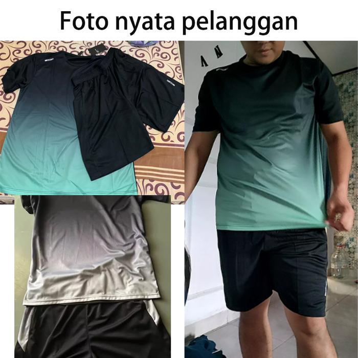 FLASH SALE KAMB SETELAN BADMINTON PRIA DEWASA WARNA GRADIEN 2PCS OLAHRAGA PAKAIANHITAM DAN BIRU M