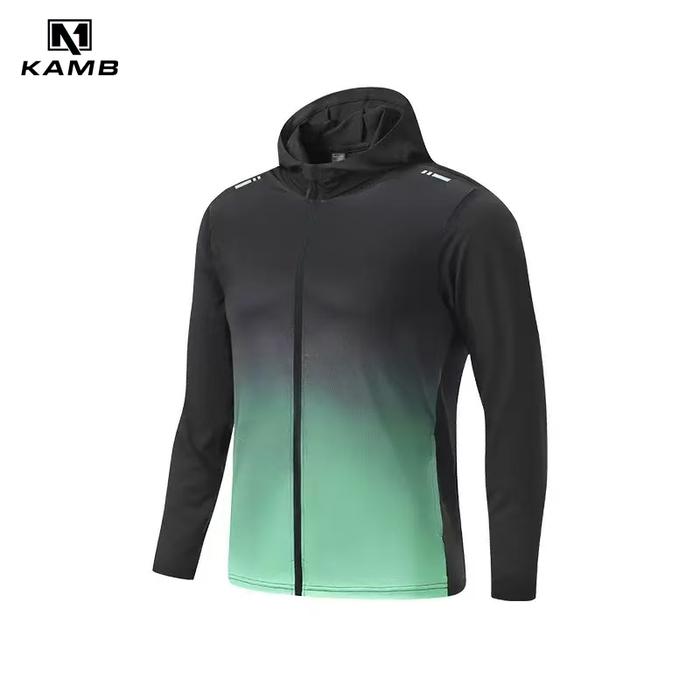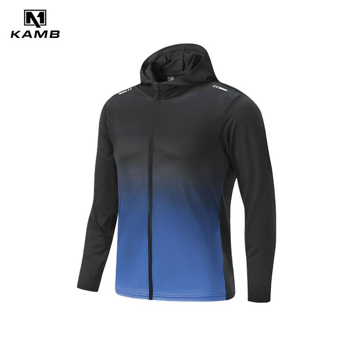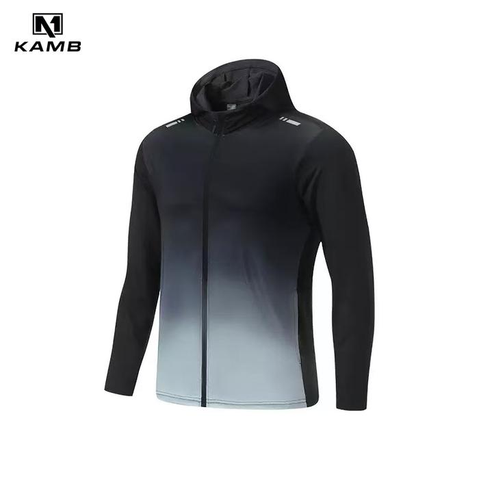 FLASH SALE KAMB JAKET PRIA ZIPPER HOODIED OUTERWEAR WARNA GRADIEN PANJANGSLIM FITHITAM DAN ABU2M(35
