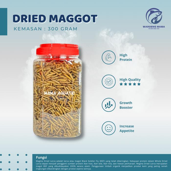 TERLARIS MAGGOT KERING BSF 300GRAM GRADE A PAKAN MAKANAN IKAN CHANNA ARWANA KOI REPTIL SUGAR GLIDER HAMSTER GRADE A 300 GRAM TOPLES