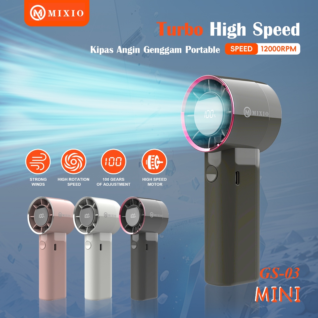 MIXIO GS-03 Mini kipas Strong Wind 100 Gear Wind Speed kipas angin Digital Display Adjustable Turbo kipas tangan untuk olahraga luar ruangan dan pendinginan cepat