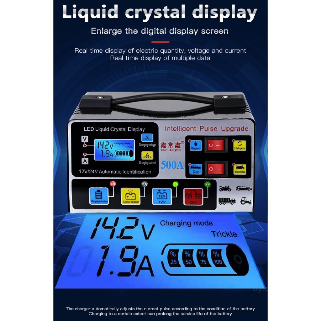 BARRE Charger Aki Intelligent Portable 1000A 12V-24V 1000A Mobil dan Motor LCD Indicator Aki Truk