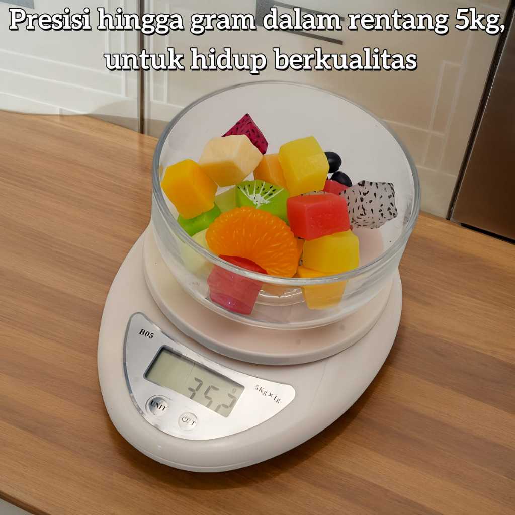 Timbangan Dapur Digital 5kg/1g - Akurat, Murah, Bonus Mangkuk! Cocok untuk Kue, Tepung & Masakan
