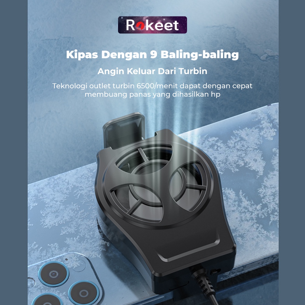 Rokeet Cooling Pad Fan Non Battery Gaming Mobile Phone Radiator Cooling Fan Cooler Pendingin Handphone