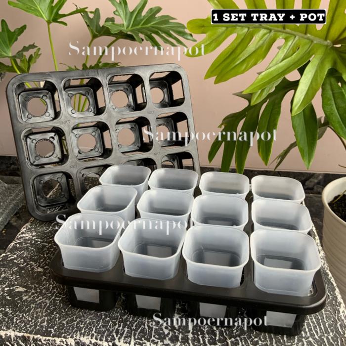 TERLARIS 1 SET TRAY POT NKT KOTAK 5CM BENING TRANSPARAN | TRAY SEMAI BIBIT