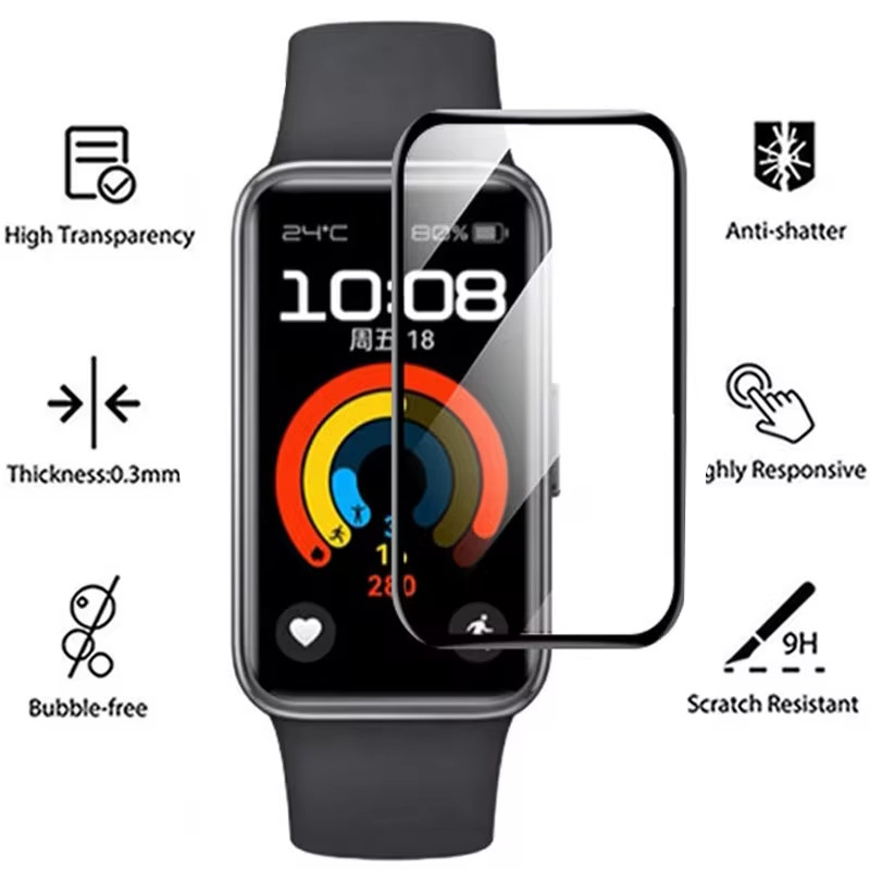 9D Tempered Glass / Soft Film for Huawei Band 10 9 8 7 Screen Protector Acceesories for Jam Tangan Smartwatch Huawei Band 10 9 8 NFC Anti Gores Huawei Band