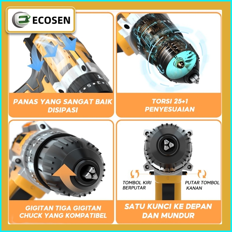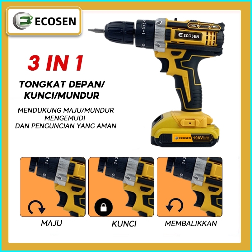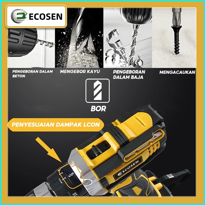 Ecosen 198vf Mesin Bor Impact Drill Tanpa Kabel Bor Tanpa Kabel Bor Listrik Bor Tangan Listrik