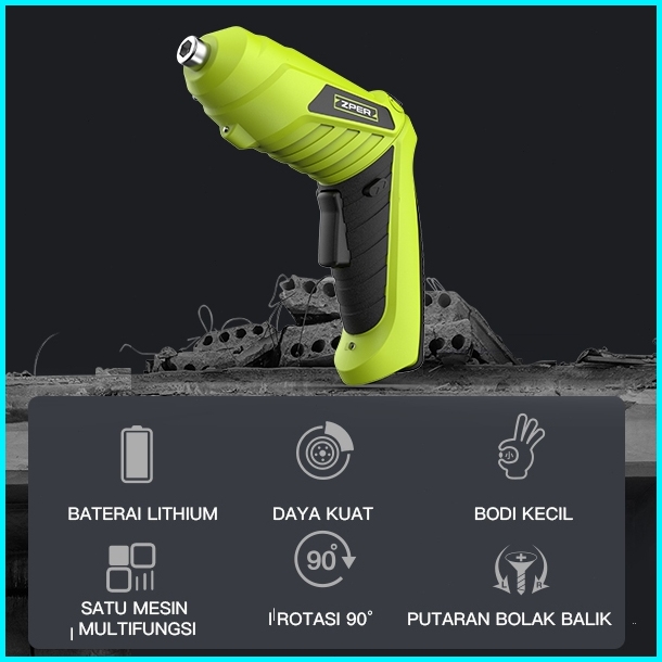 Zper Mesin Bor Baterai 4.2v Obeng Listrik Cordless Drill Battery Bor Kayu Triplek Besi Bor Zp016