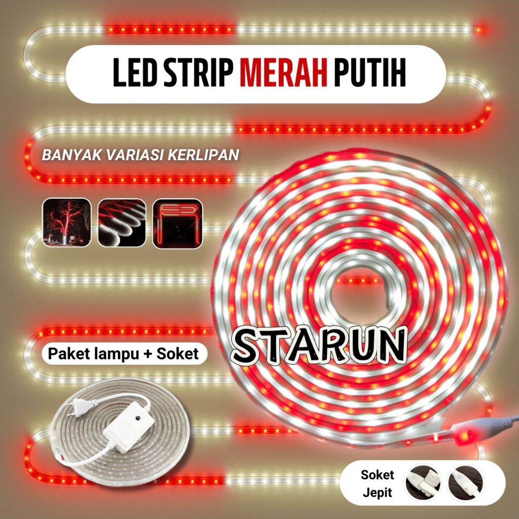 Lampu Led strip Outdoor Merah Putih Termasuk Adaptor 220V/Led Strip Agustus Lampu Hias Anti air Led 2835 3528 Strip 10Me